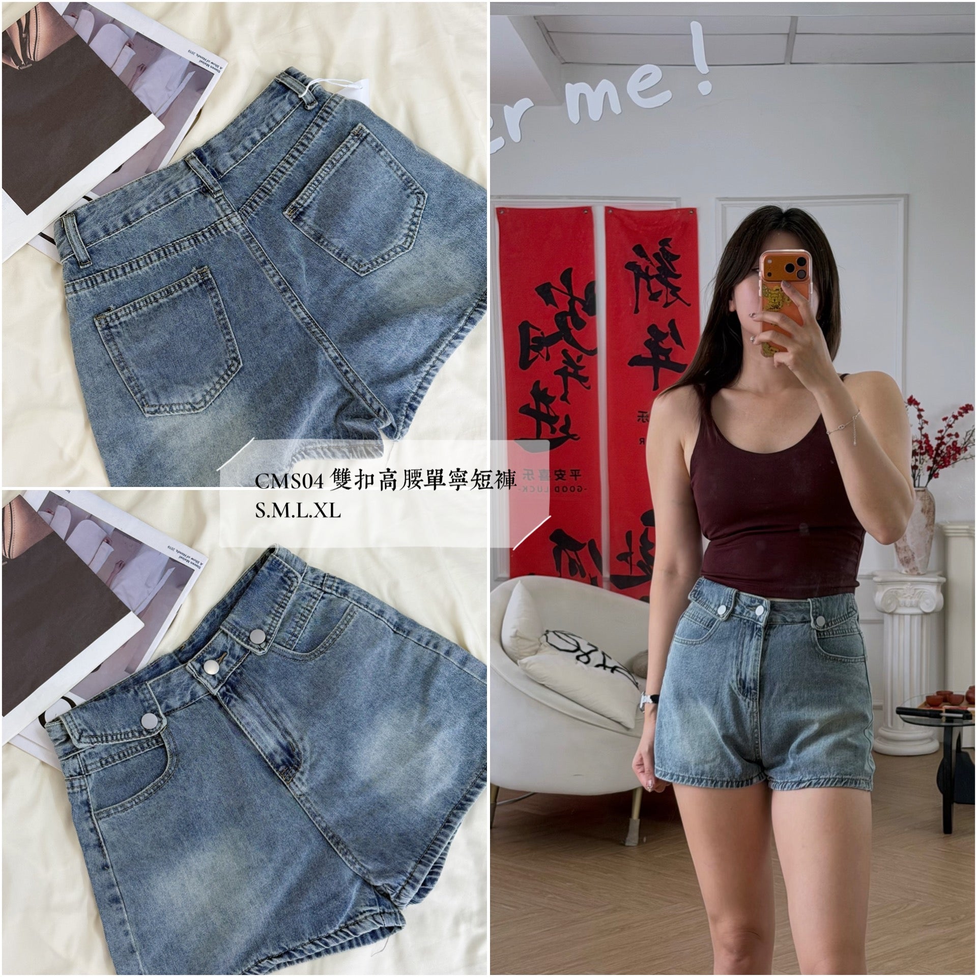 【春季限定】CMS04 双扣高腰牛仔短裤|腿长比例王