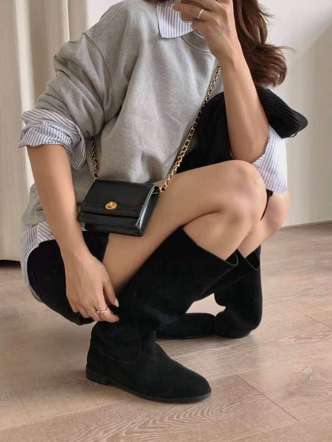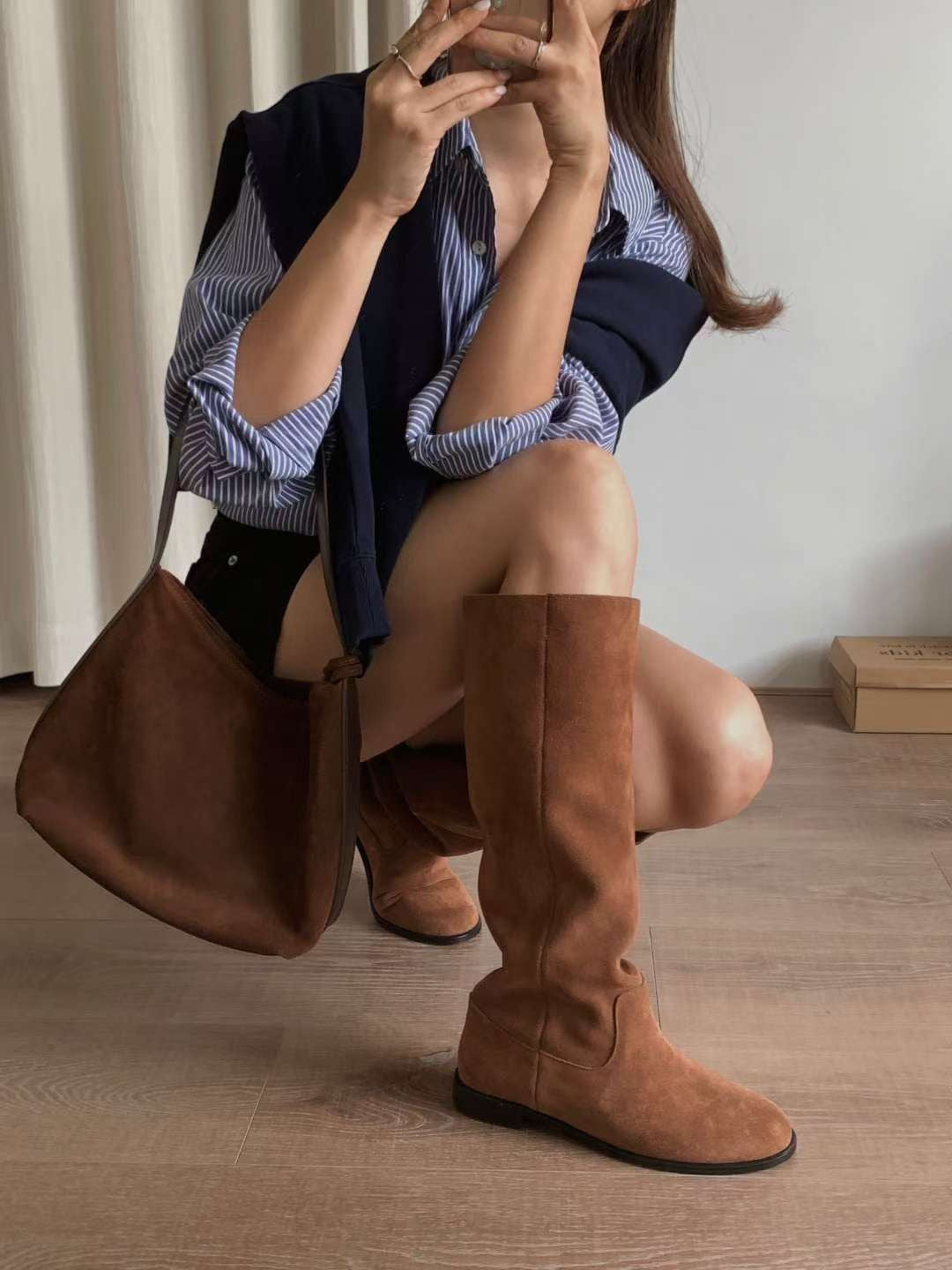 KS51008 🏷️ 秋季新品 真牛絨皮长筒靴
