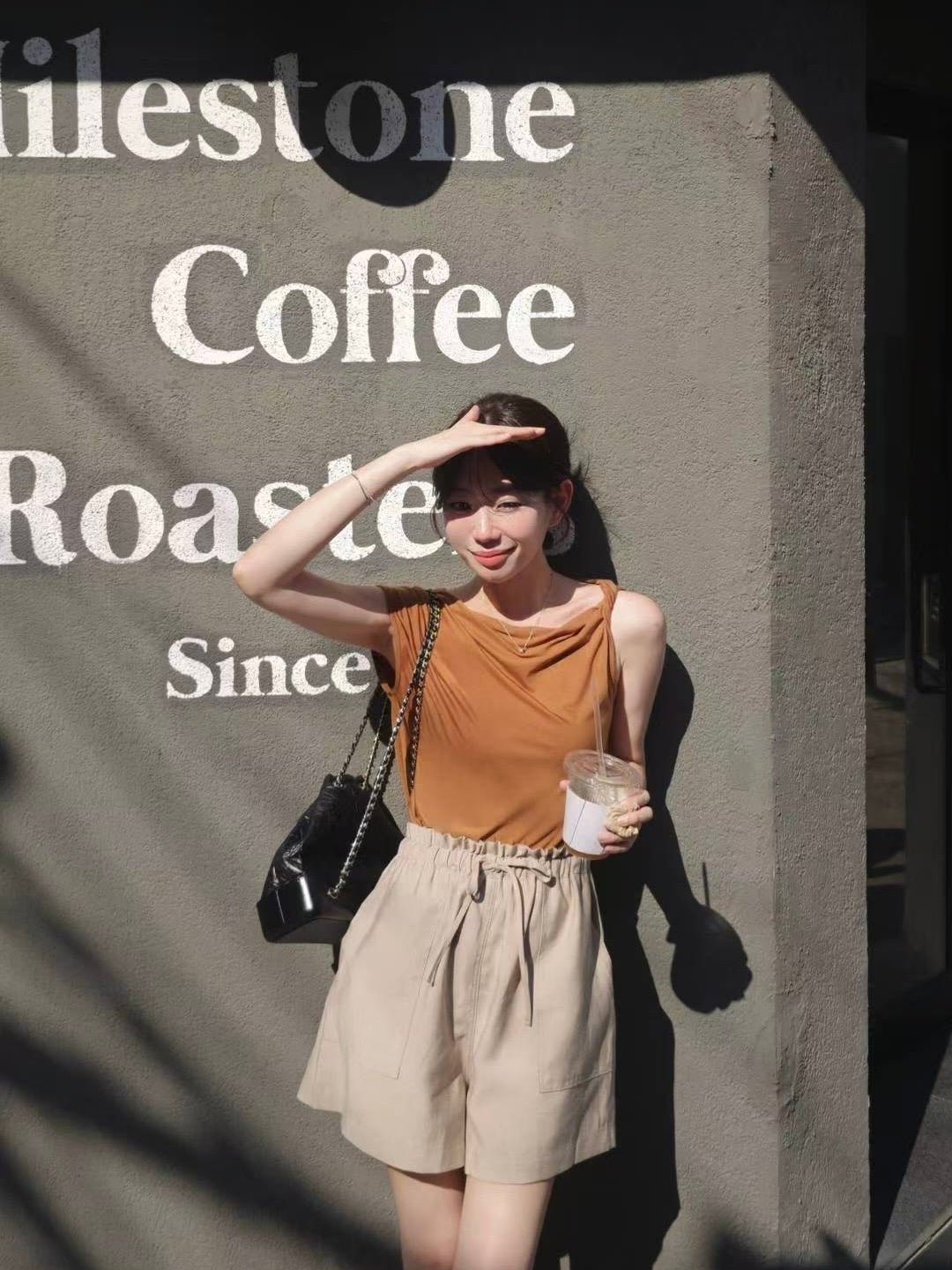 非常适合搭配秋天靴子和风衣穿搭的一款短裤,版型修饰修身,腰头设计非常漂亮🤗🥰