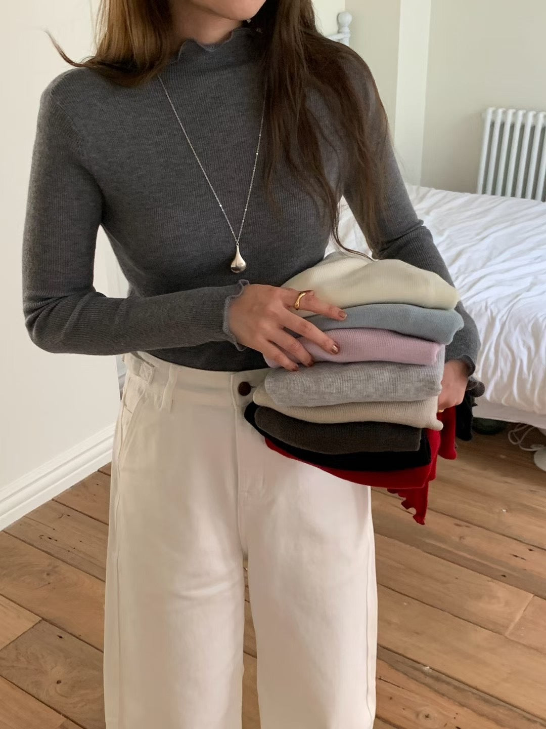 MS50917 木耳领边打底羊毛上衣