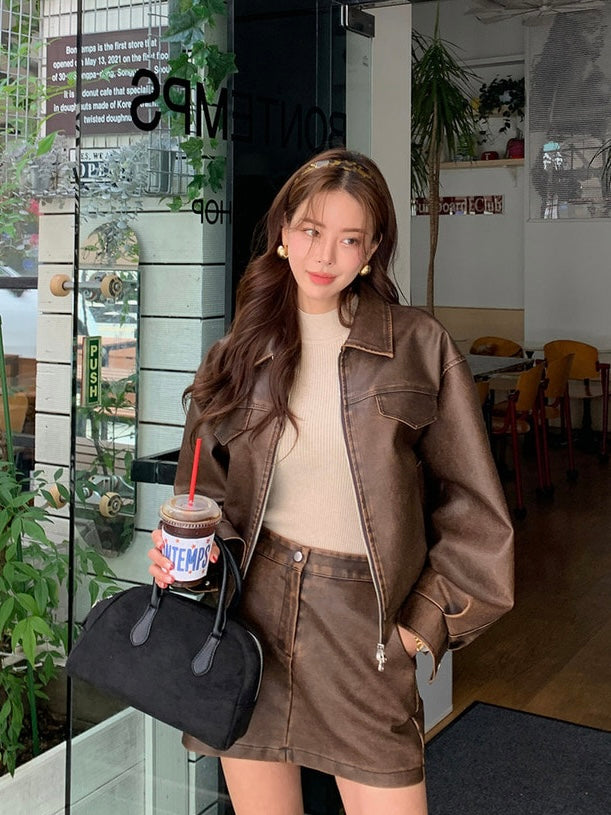 MS50940 Quinn皮革帅气短裙