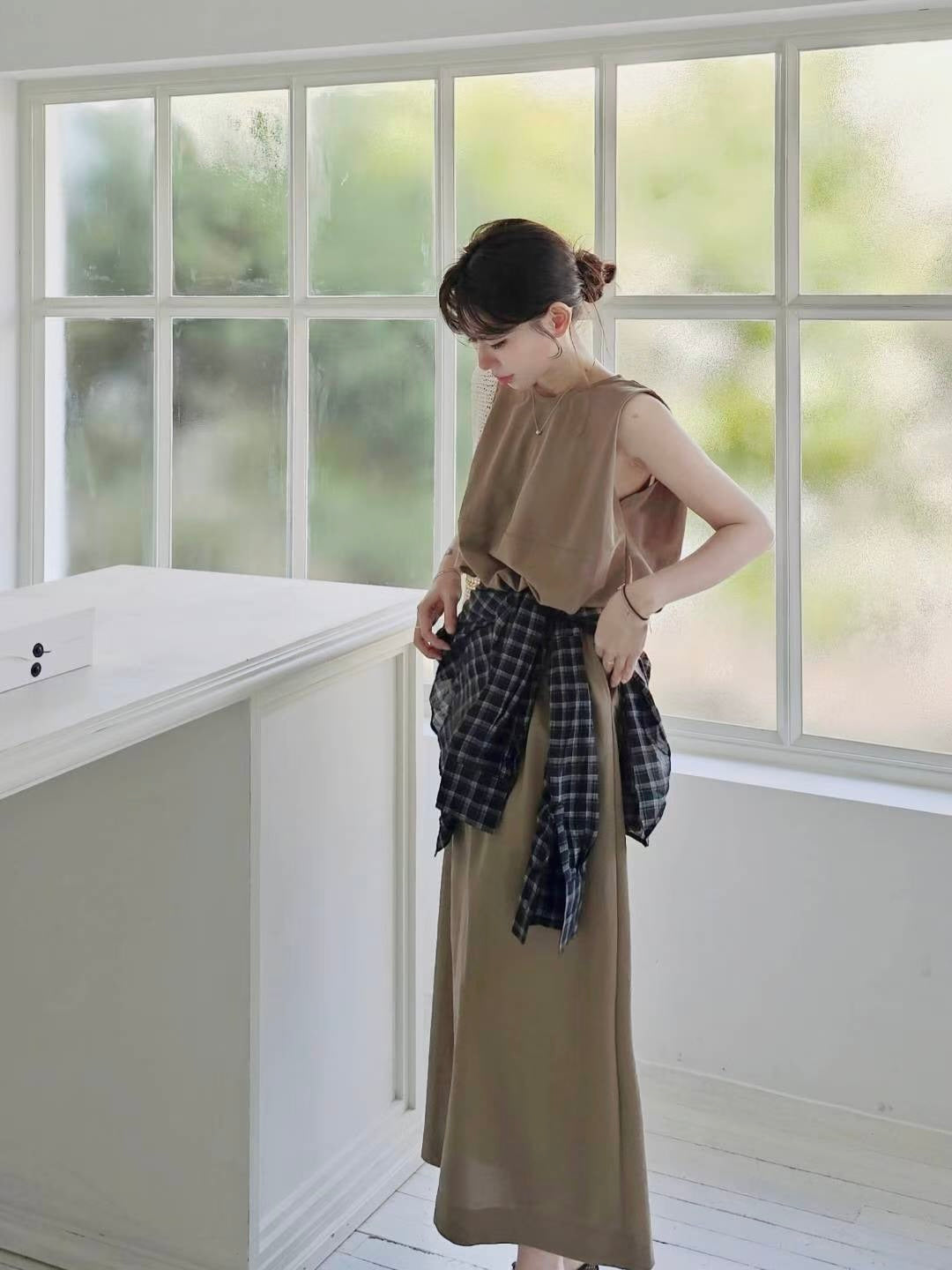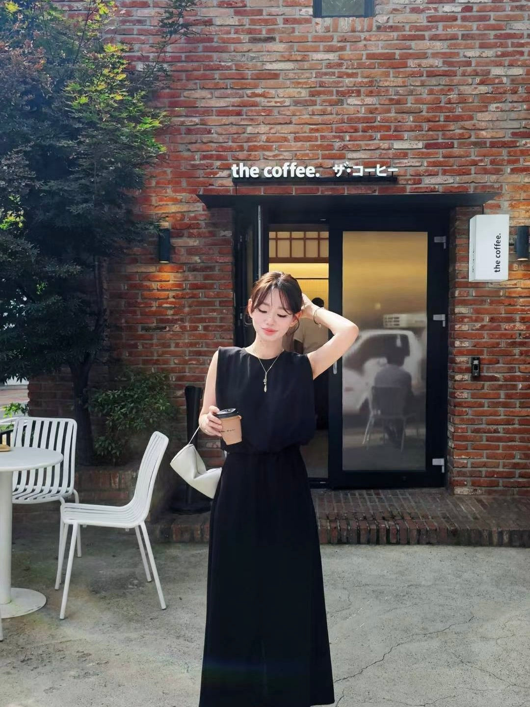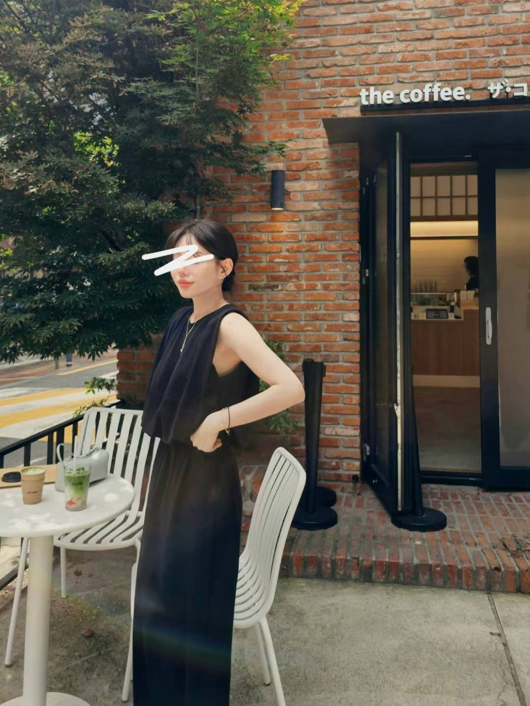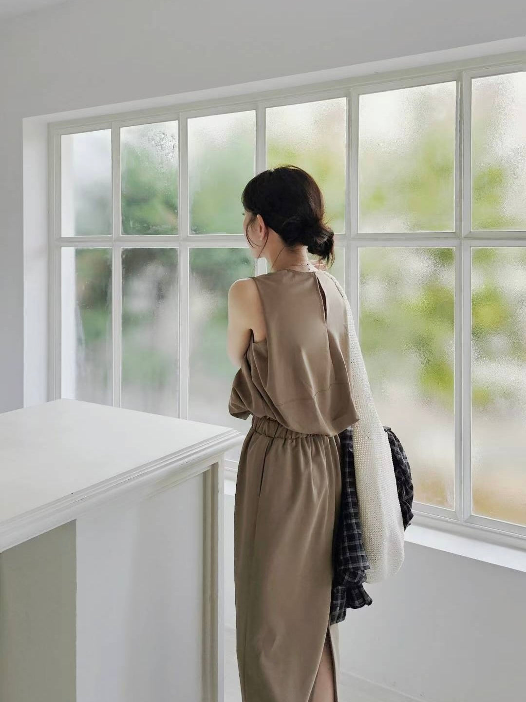 自带高级感的极简长洋装🍂🍂,肩膀带立体剪裁,修饰手臂又有设计感,搭配短靴和秋天外套类都好看😌🤗