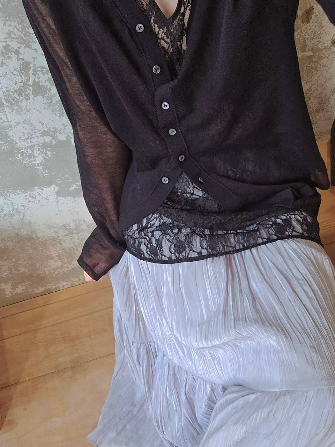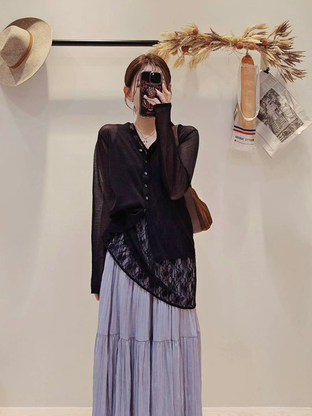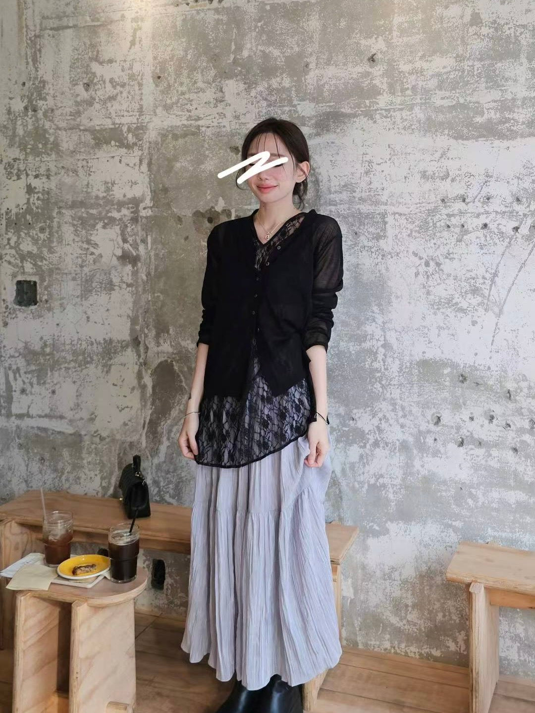 这两季很流行的叠穿,欧尼出了这款内搭或是外罩都好看🥰😍,长度盖住臀部,但是面料的透视感让身材比例不受影响~👌😎