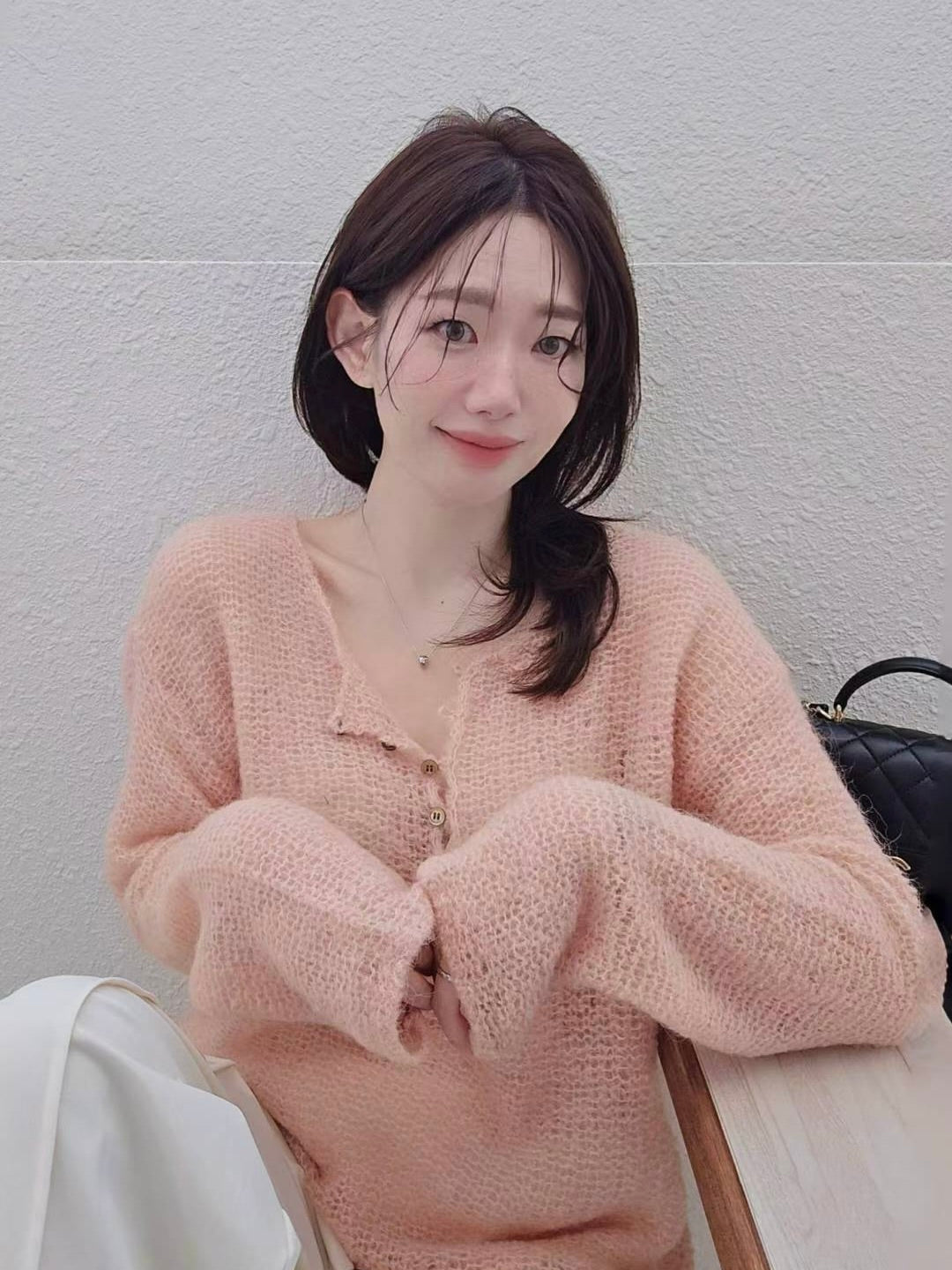 温柔小姐姐的空气感毛衣~ 半开襟亨利领设计,单穿或是叠搭都很适合的一款毛衣,透肌的空气感好美。也可以把扣子穿在背后,稍微开扣露出后颈线条也很美🥰
