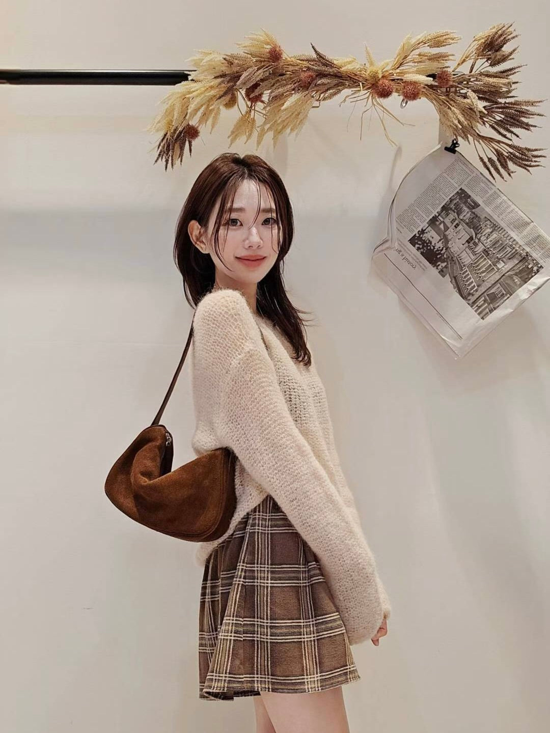 看起来像小短裙,实际上是裤子喔!😎 穿着舒适不用担心曝光或是不方便,搭配宽松毛衣的慵懒风或是衬衫类的学院风都好好看~美拉德色系美死🍁🍂🤎🤎