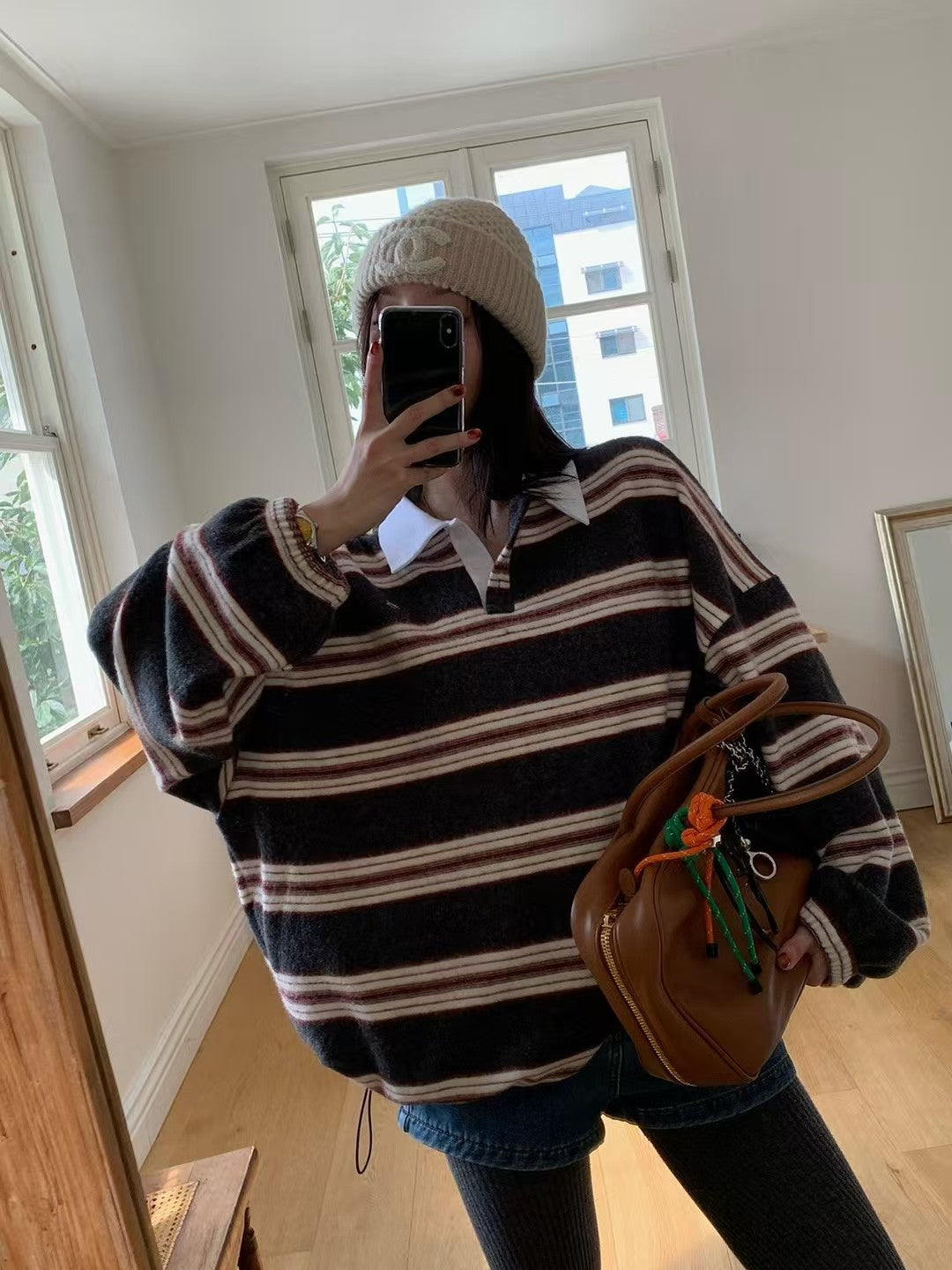 MS51107 线条拼色毛毛上衣