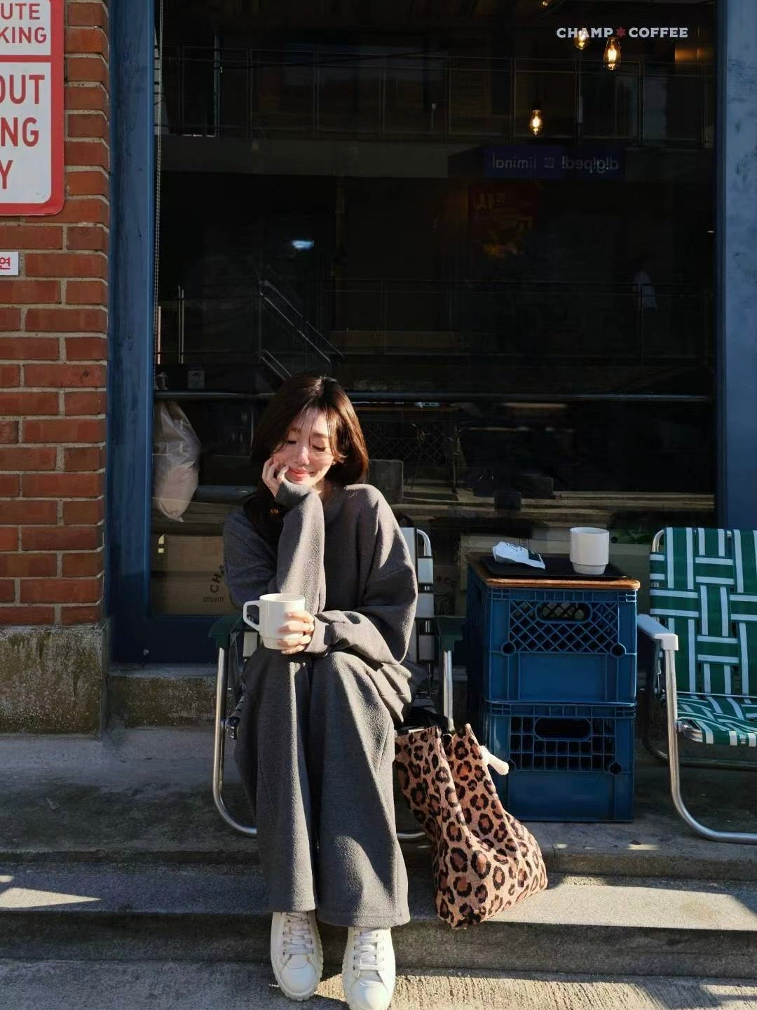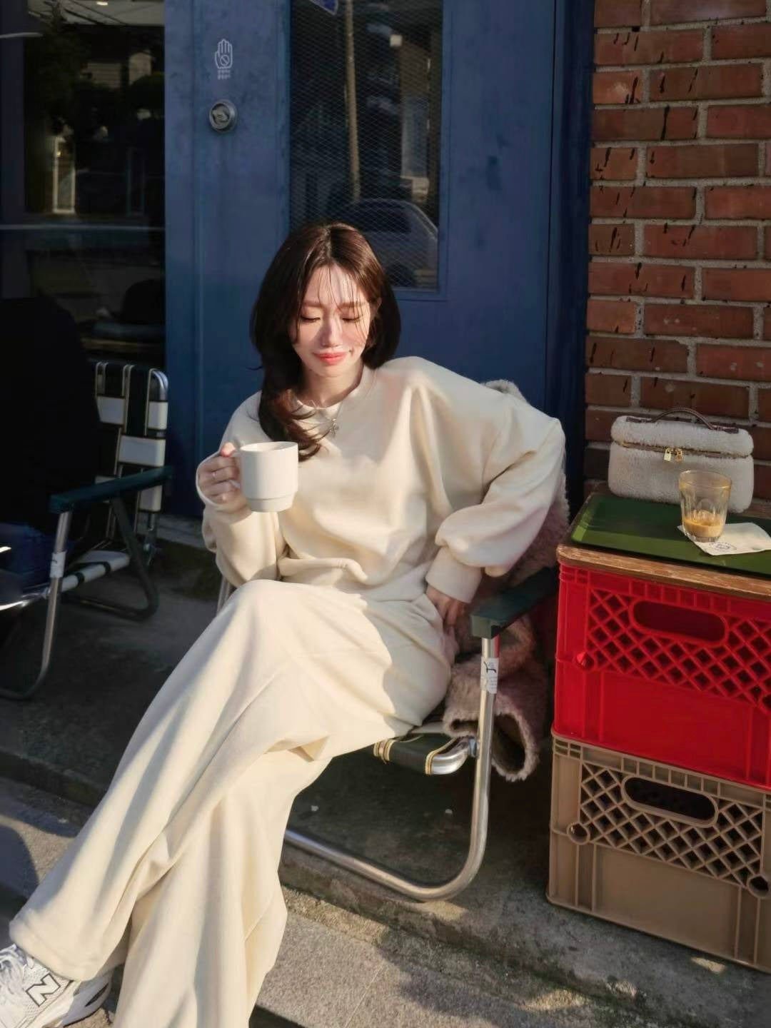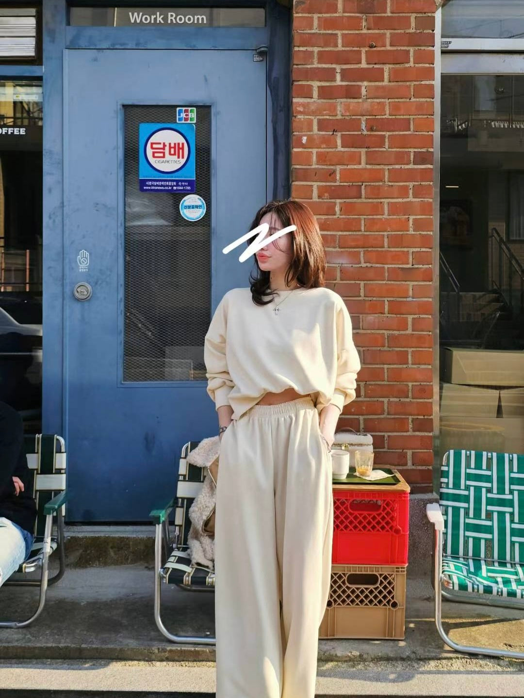 休闲松弛风格最爱的懒人卫衣套装,上身是中等长度,刚好盖住裤头,不扎也好看~微宽的直筒长裤,修饰又大长腿,搭配其他秋冬针织毛衣一样美美的🍂🧸🍁🥰