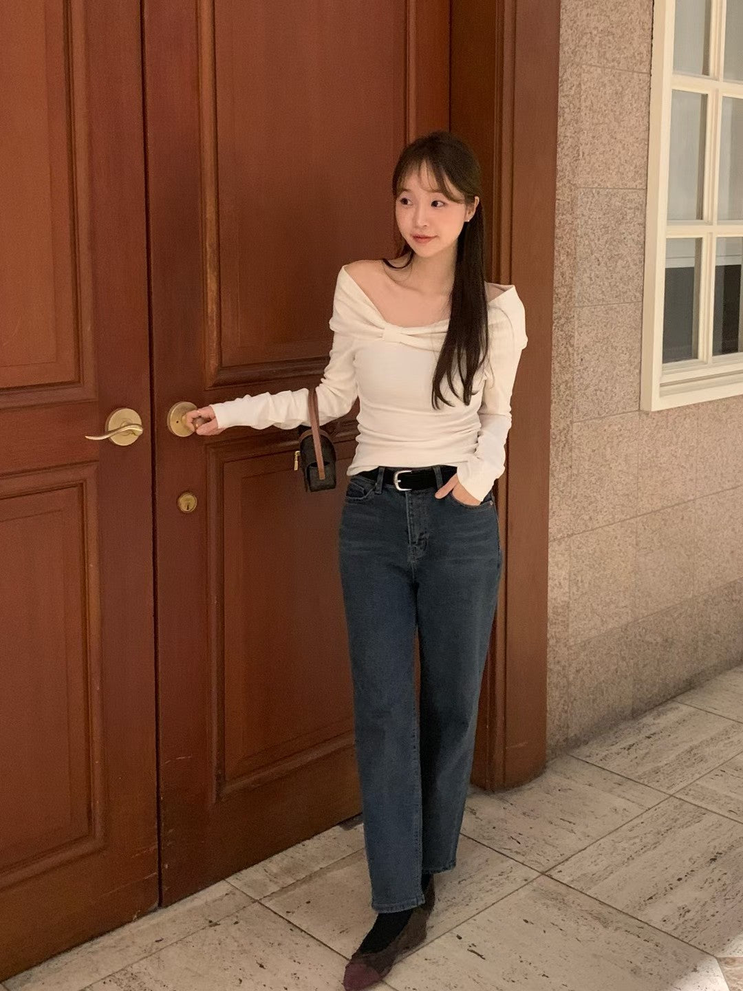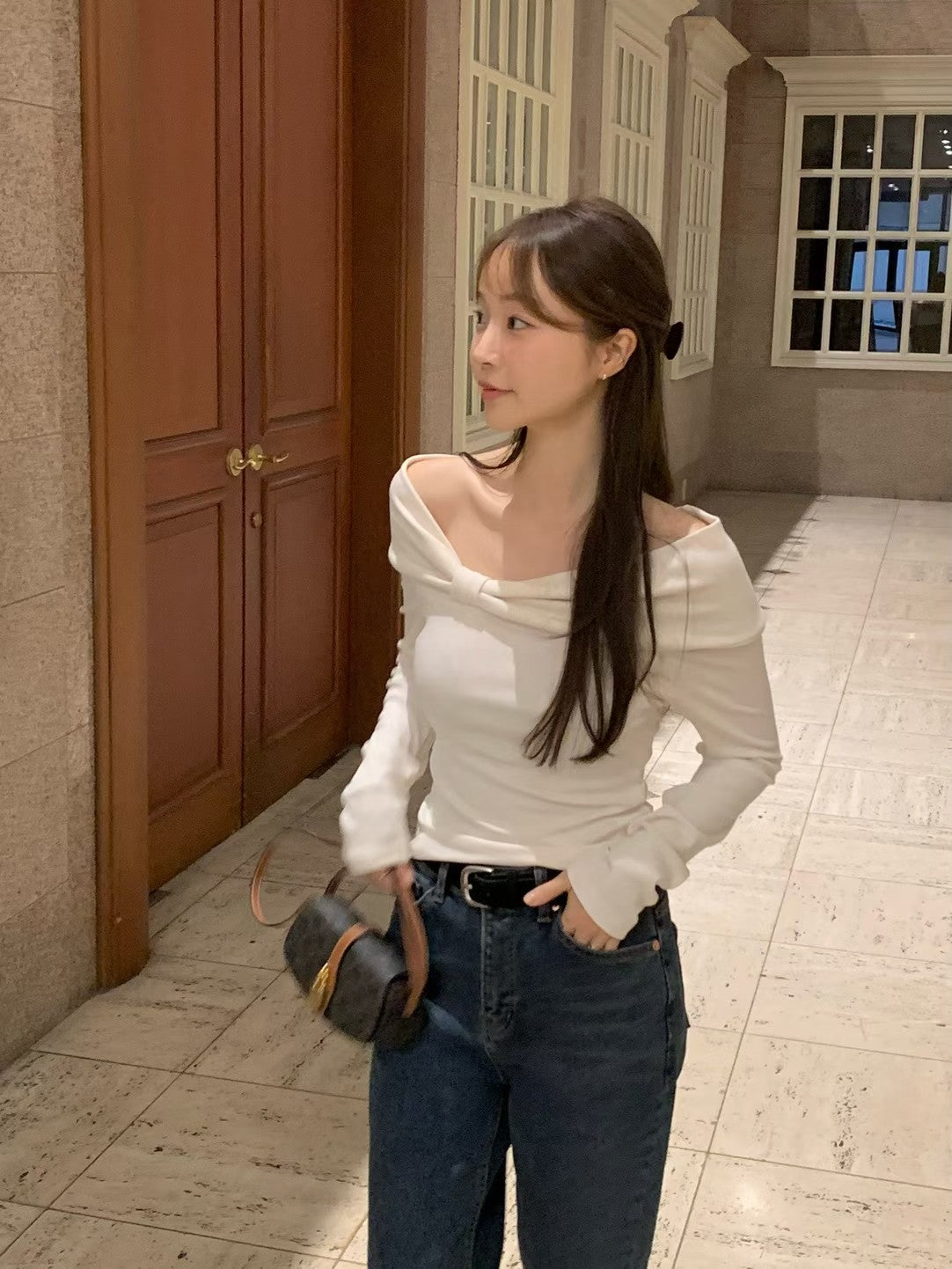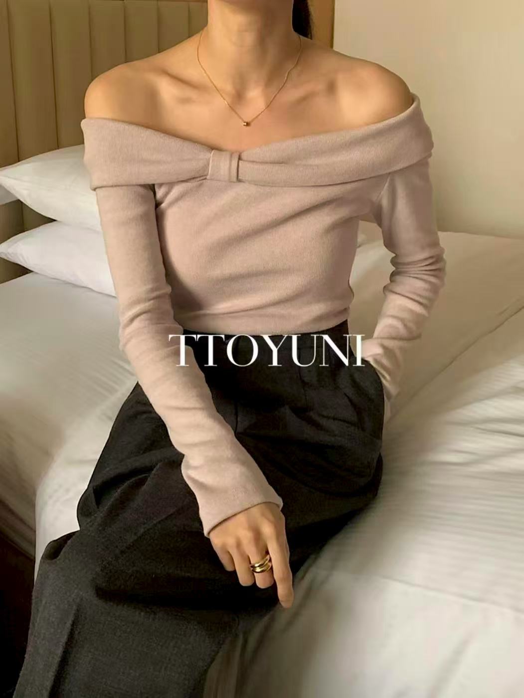 MS51144 Amelie一字肩蝴蝶结上衣
