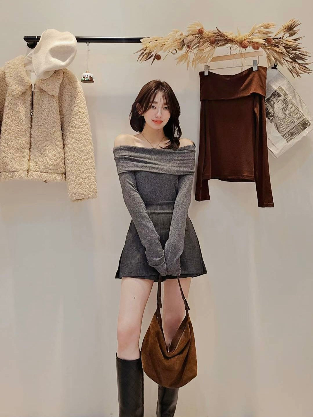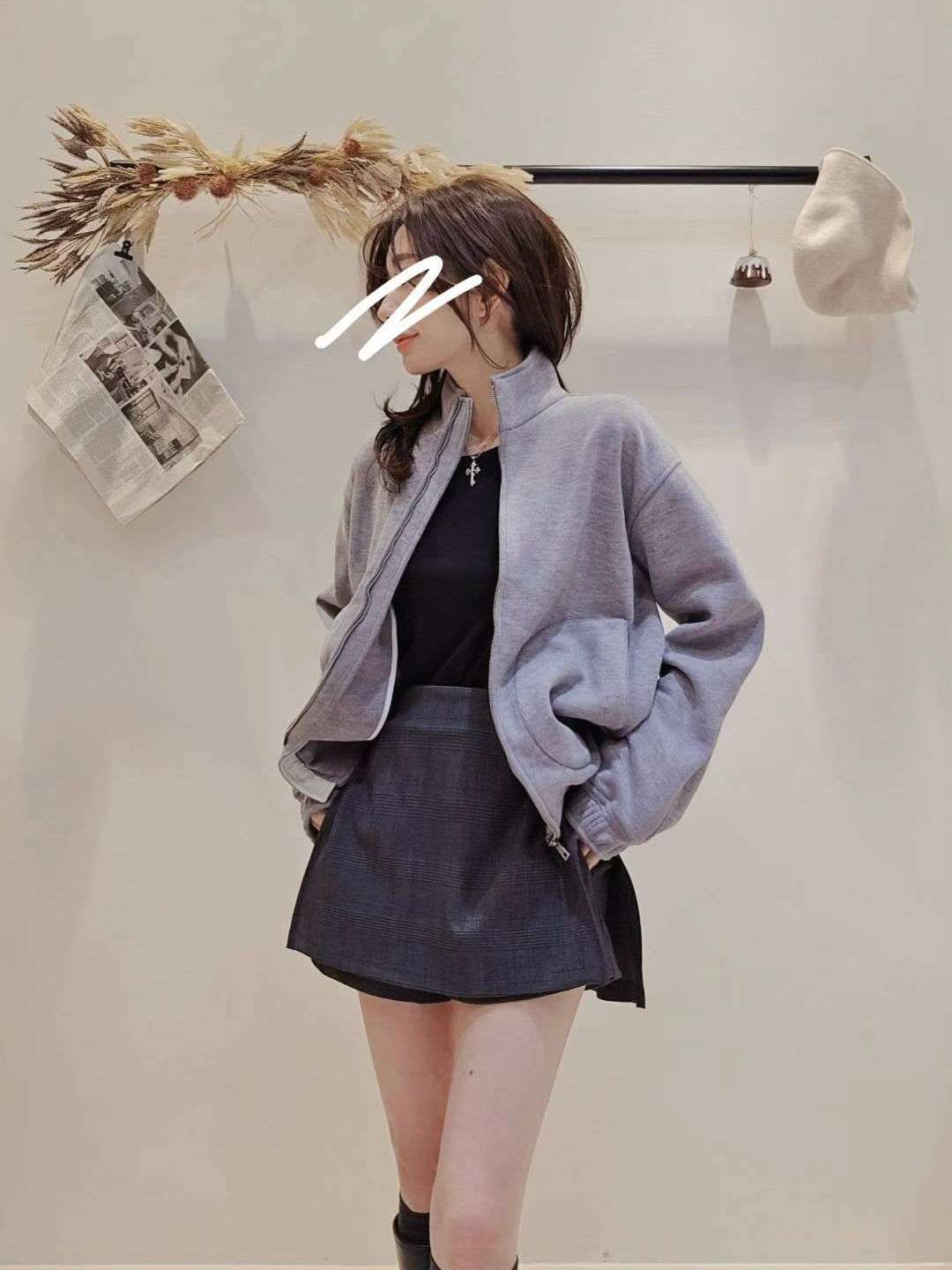 冬天还是要露美腿呀😍😎~,穿长靴或是搭配裤袜和皮鞋都超时髦的一款小裤裙~上身可以搭配宽松毛衣或是大学卫衣都好看🩶🖤