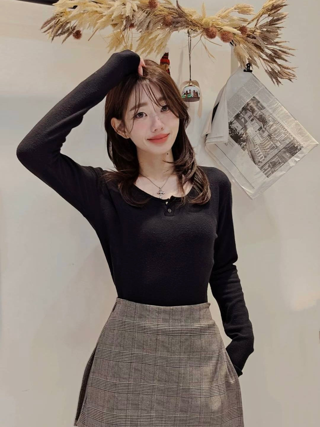 爆款升级版~!!欧尼换了更舒适的一款布料制作喔🥰😍,好穿好搭的万能打底T,两侧有美美的腰线剪裁修身身型😍😍,胸前有个装饰性的小小亨利领,长度是一般T恤基础长度~ 各种日常穿搭单穿或是当基础内搭都👌👍