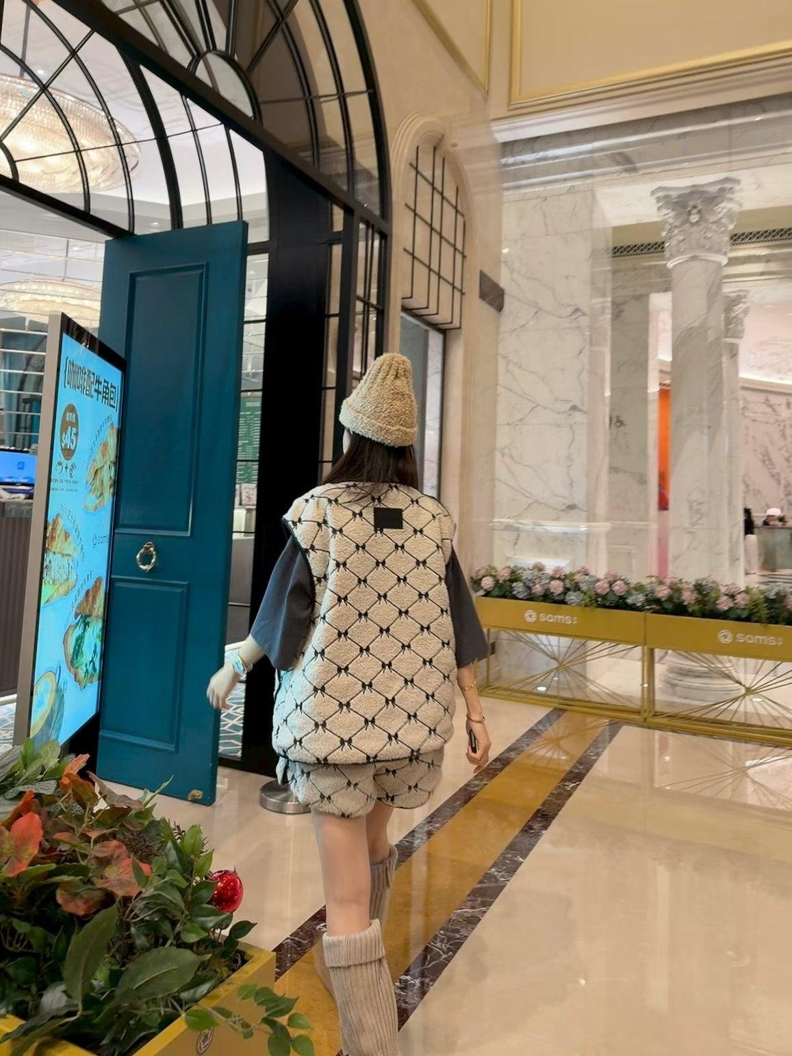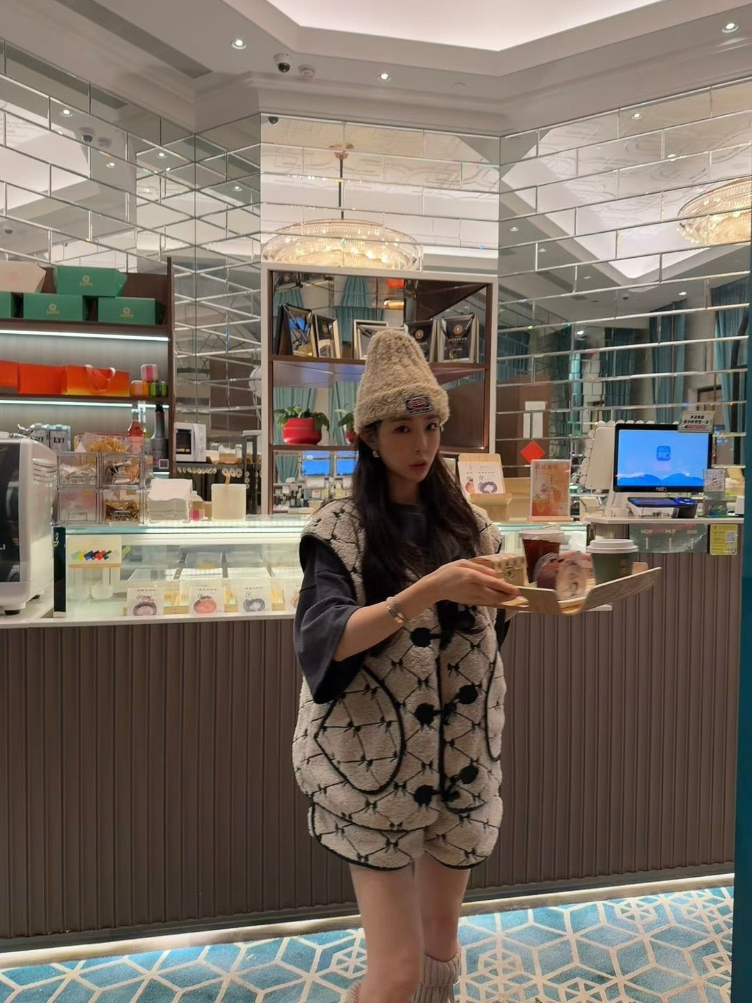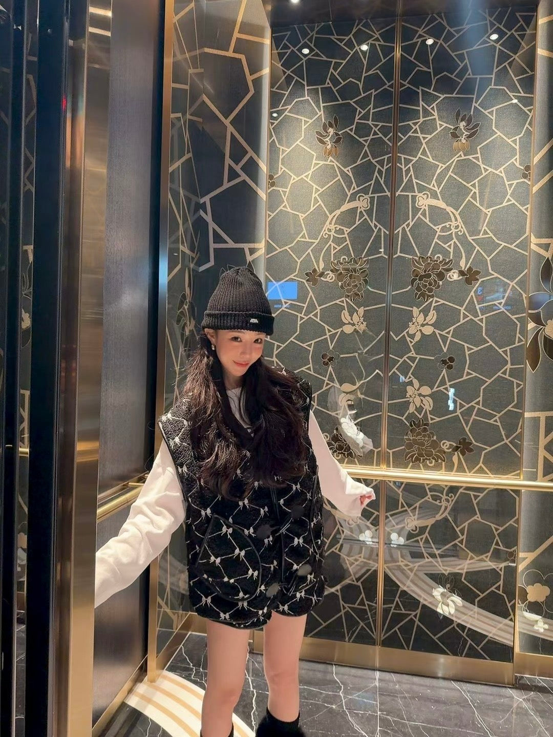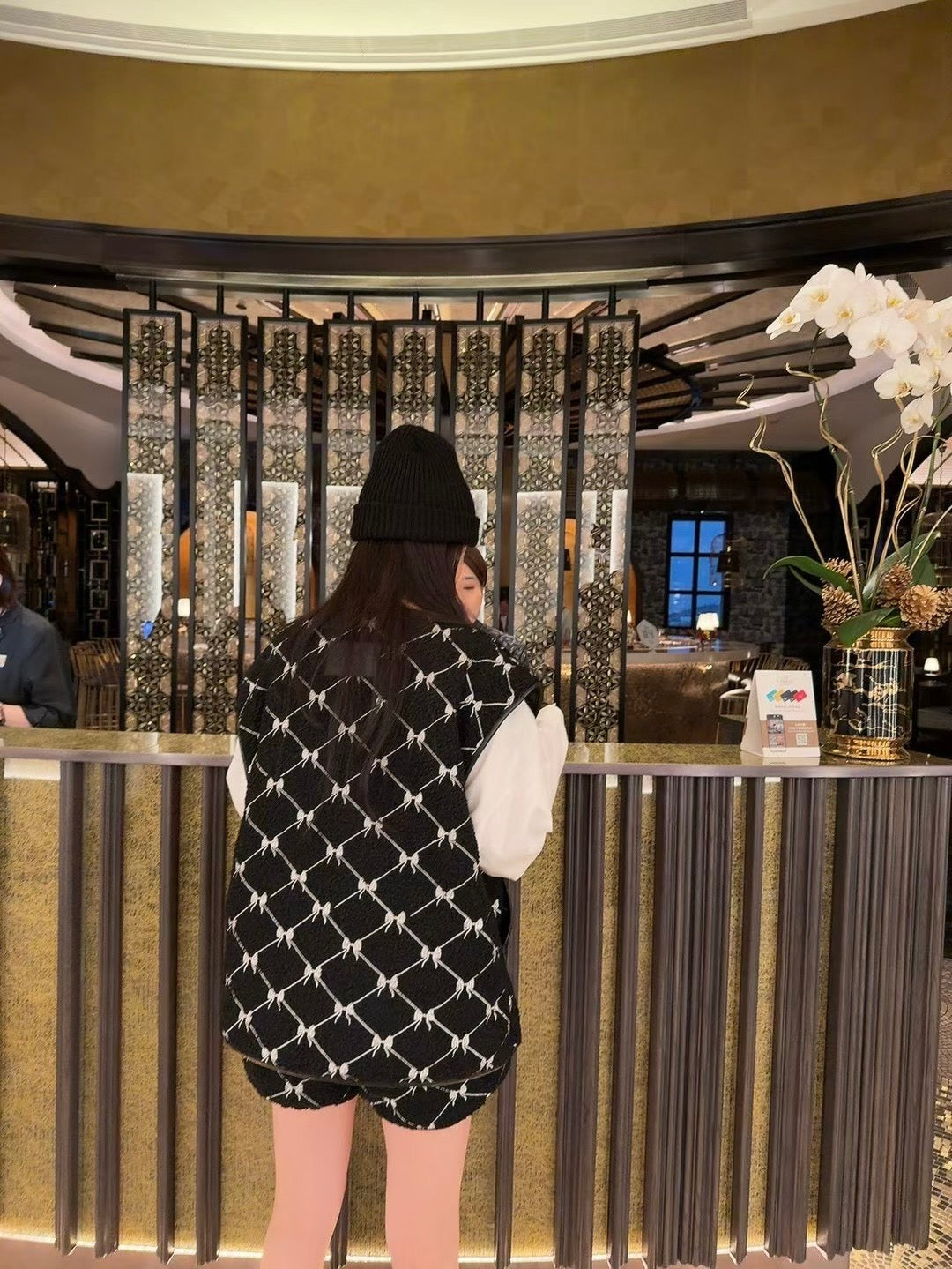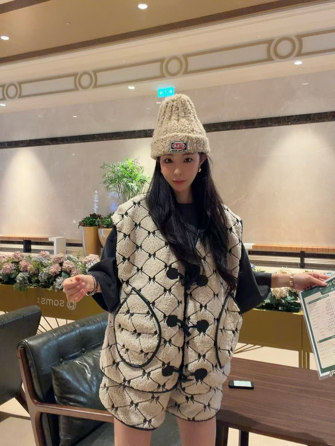 MS51249 满印蝴蝶结马甲短裤套装