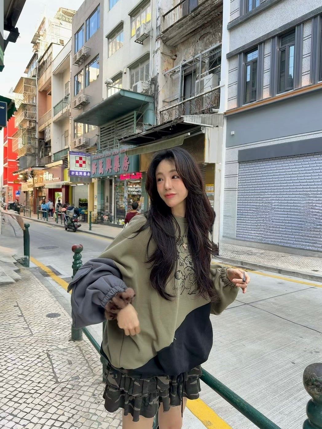 MS51251 咖啡猫混色宽松卫衣