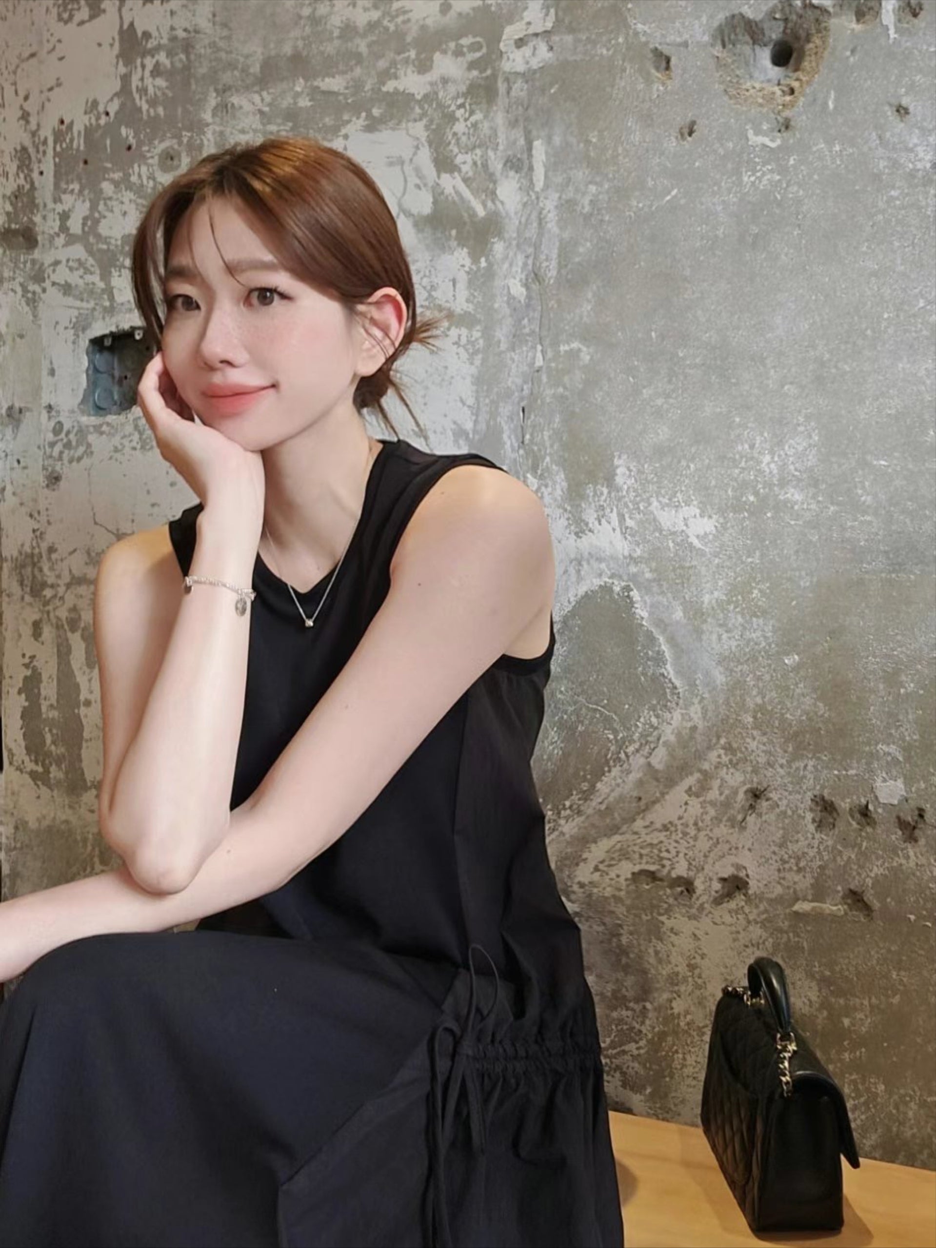 人件人爱的一款长洋装,欧尼上周在档口穿着现货就快卖光啦🥺😆,下摆的伞状,垂感和立体感都超级美~!!🤍💚🖤